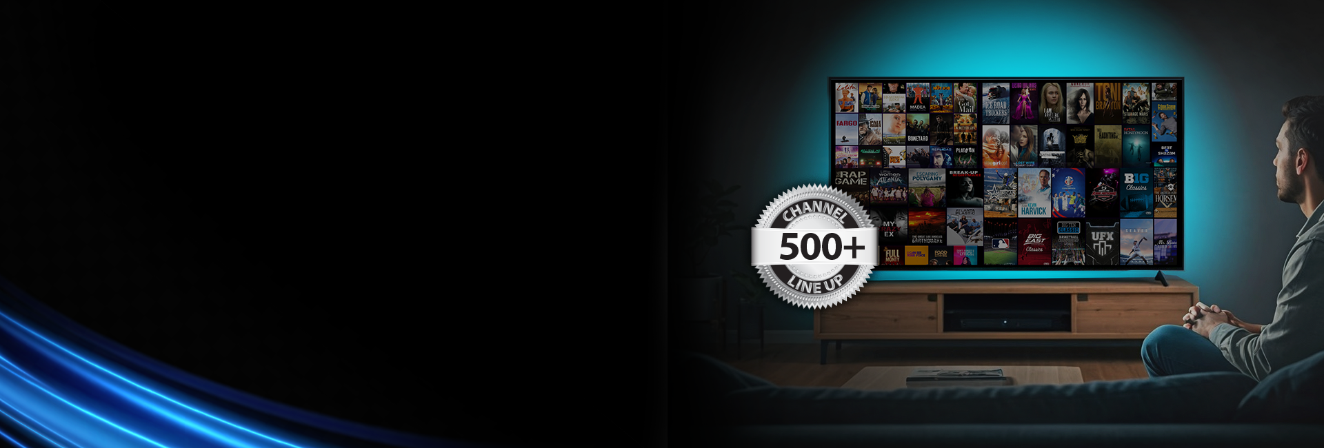 - • 500+ Channels: Live TV, Streaming Movies & Shows, International, Music, and Local Channels